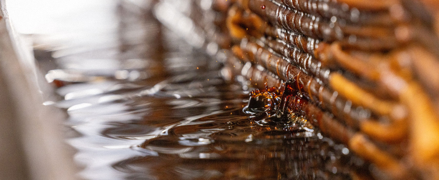 三度の夏を越して熟成させた「特醸」「特吟」大豆・塩・麦のみで仕込み、化学調味料を一切使用しないこだわりの醤油。ふつうの醤油は、調味料や着色料で色や味や香りを調整しますが、 天然醸造の「純もろみしょうゆ」には、一切の添加物は使用しておりません。